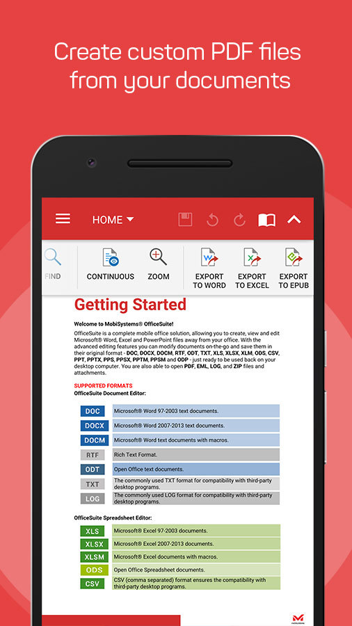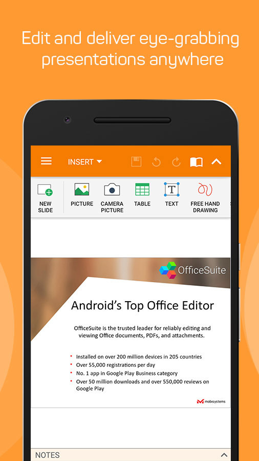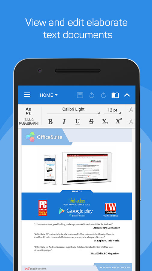 OfficeSuite lets you easily view, edit, and create Word, Excel, and PowerPoint documents, convert to/from PDF, and manage your files all with the most feature-rich mobile office solution available on Android.